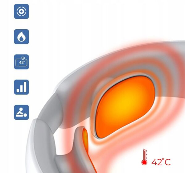 Masażer karku EMS rozluźnia spięte mięśnie, rozgrzewa szyję do 42°C i daje natychmiastową ulgę tam, gdzie zbiera się napięcie – w karku, barkach i górnej części pleców.