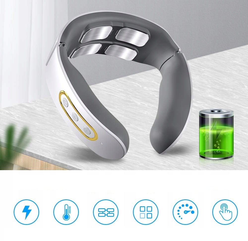 Masażer karku EMS z funkcją podgrzewania wykorzystuje impulsy elektryczne, które rozluźniają mięśnie i poprawiają krążenie już po kilku minutach.